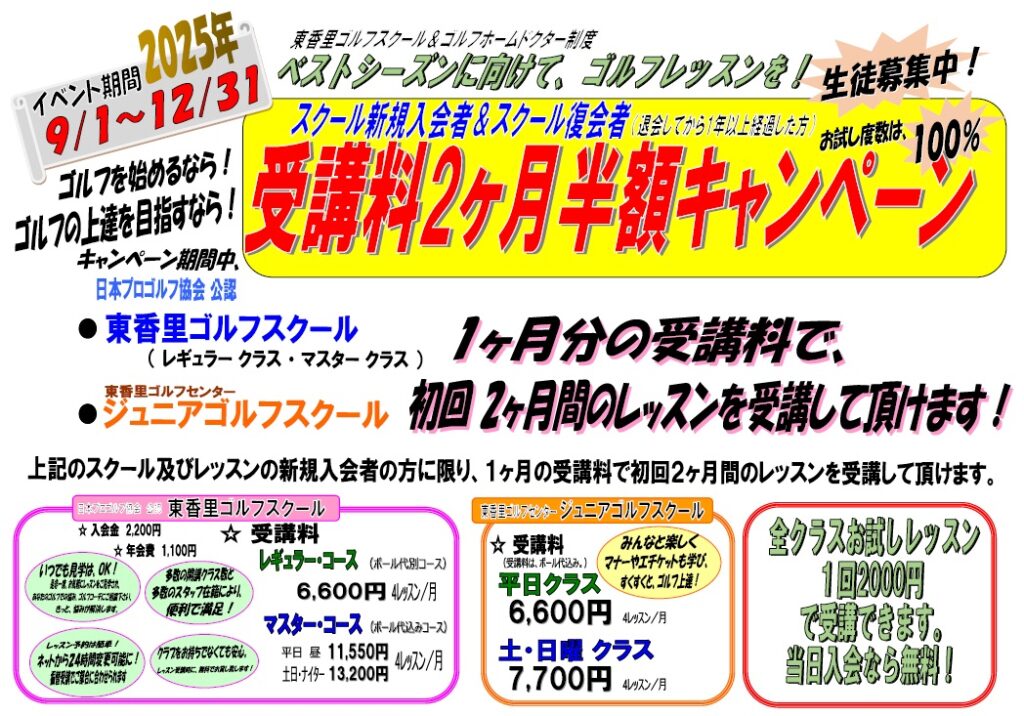 キャンペーン期間中、東香里ゴルフスクール新規入会者の方に限り